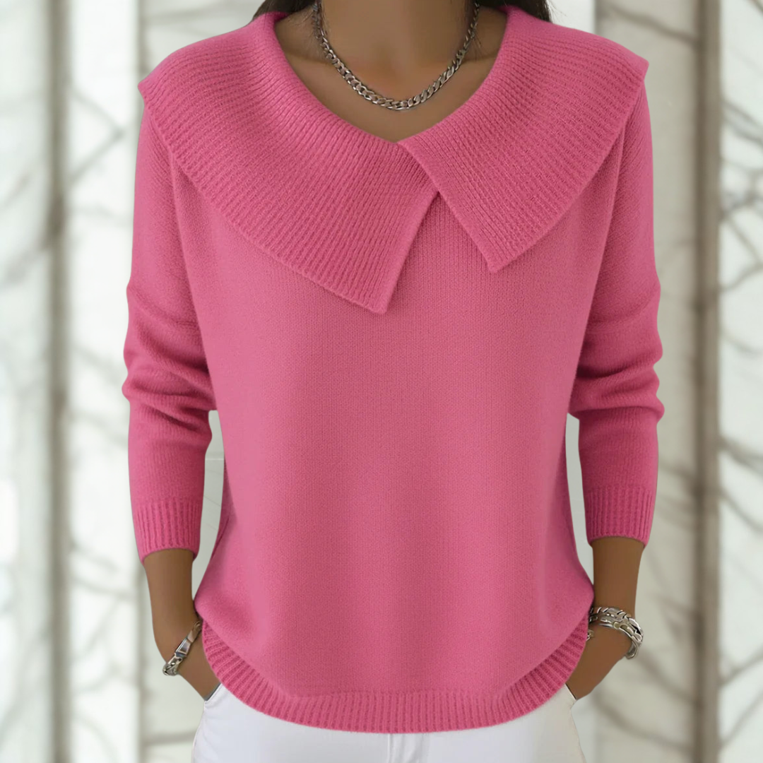 De Elena | Elegante Kraagtrui brengt luxe comfort en verfijning moeiteloos samen. De brede, geplooide kraag geeft een stijlvolle, unieke uitstraling, terwijl de zachte knit warm, soepel en flatterend om je heen valt. De rijke rode tint geeft elke look direct een feestelijke touch — perfect voor dit seizoen.